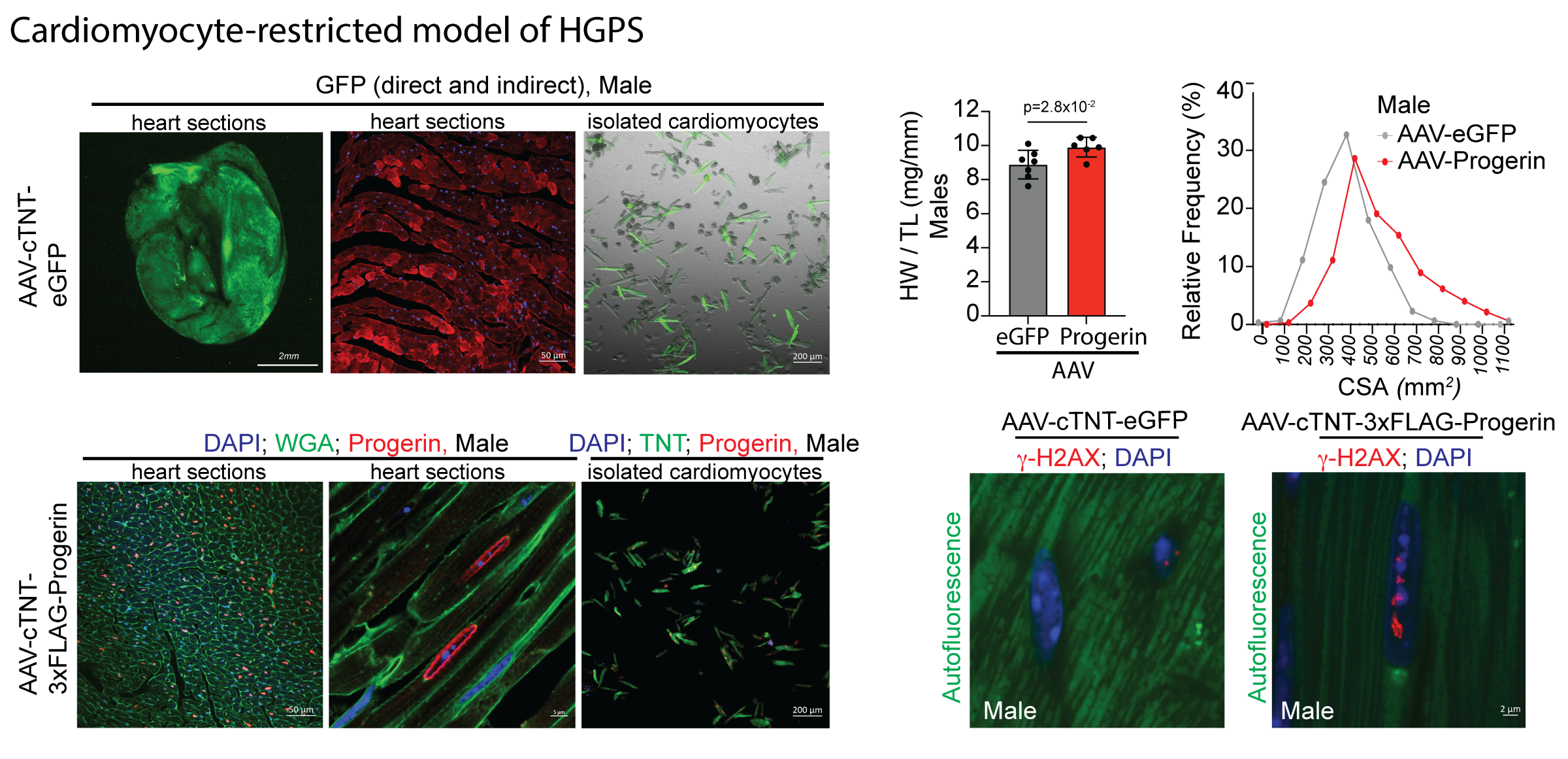 The images above depict a cardiomyocyte-restricted model of Hutchinson-Gilford progeria syndrome (HGPS).