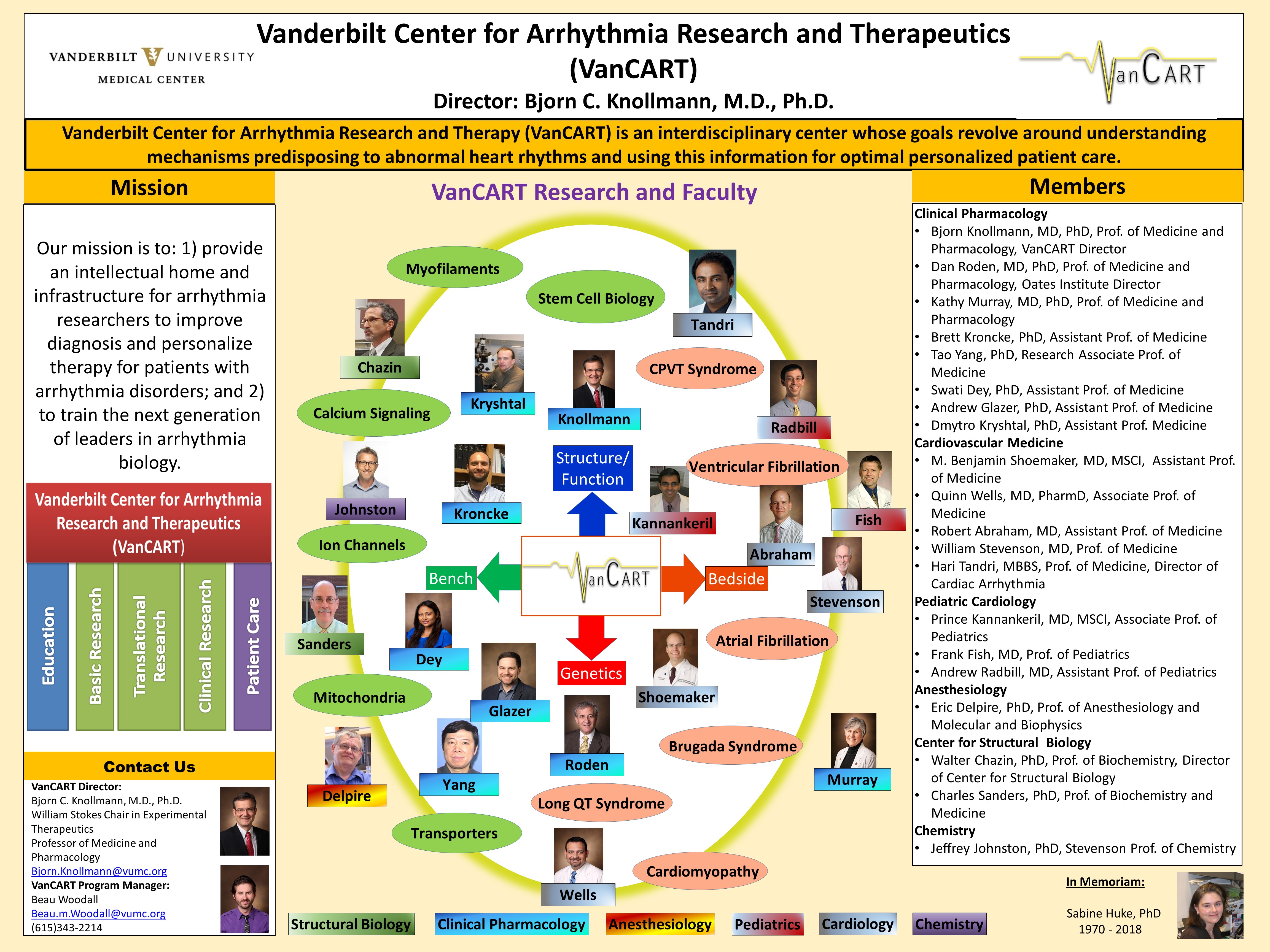 Vanderbilt Center for Arrhythmia Research and Therapeutics (VanCART) is an interdisciplinary center aiming to understand mechanisms predisposing to abnormal heart rhythms and using this information for optimal personalized patient care.